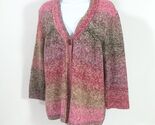 EUC, Excellent Used Condition. Kim Rogers cardigan has 3/4 length sleeves one button closure. The colors are in shades of pink, tan, lavender, gray. There is a decorative cord at the back neck on the top front, back shoulders that makes for a nice decorative accent. A great sweater to layer on fall and winter days. No rips, stains or tears.