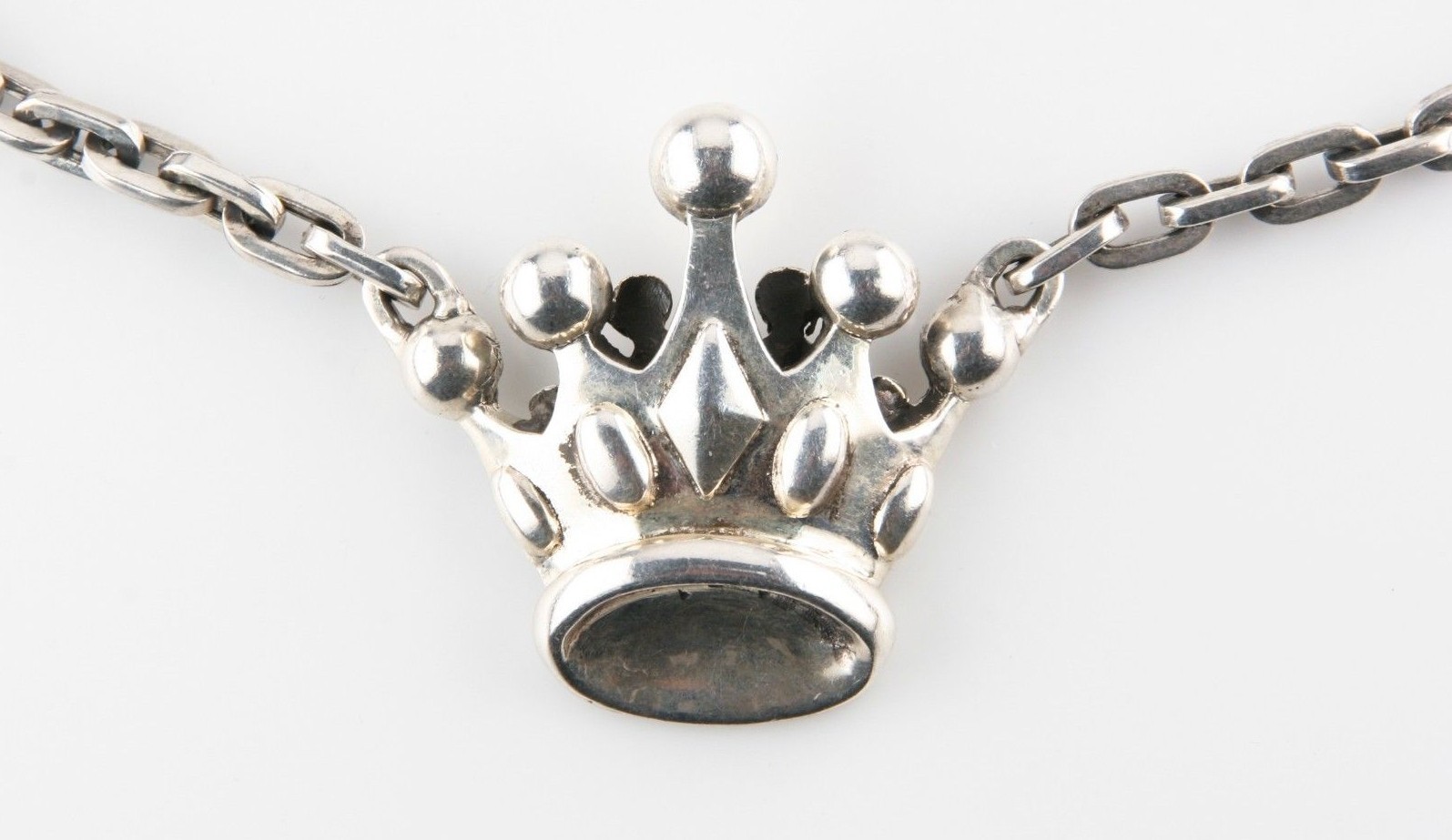 Incroyable, rare couronne pendente Neckce avec chaîne d'ancrage en argent d'origine avec fermoir a bascule