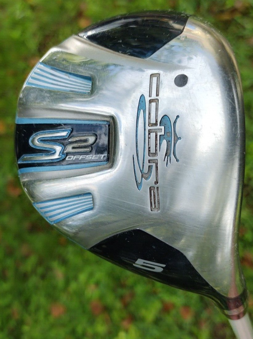 Pre-Owned King Cobra S2 Offset Fairway 5 Wood Graphite Fujikura 50FW Woman's Ladies Flex. The club comes in good playable condition as shown. It does show signs of usage from play. Please use the photos to determine the condition of the club for yourself. We have many more golf clubs and accessories in our store so be sure to check them out. We get more in every day. Ships insured.
