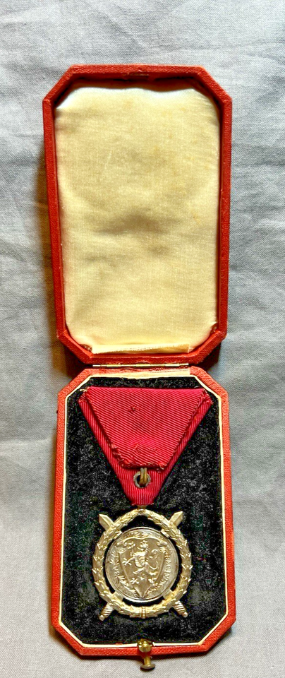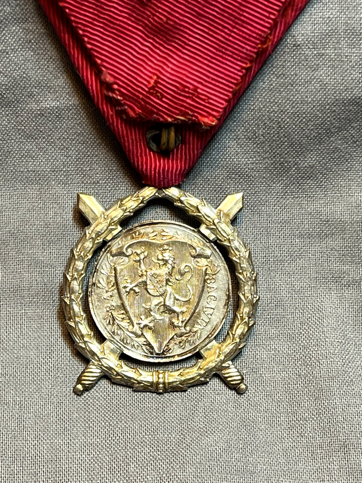 UP FOR SALE IS AN ORIGINAL AUTHENTIC EXAMPLE OF A WWI ERA BULGARIAN KING FERDINAND 1st "ORDER OF MILITARY MERIT." RESEARCH FULL I.D. IS DIFFICULT, BUT THIS SEEMS TO BE THE "4TH CLASS 'OFFICERS'" GRADE AWARD AND IS COMPLETE WITH ORIGINAL BOX INDICATING "ZASLUGA" (FOR - MILITARY - SERVICE). THE SILK RIBBON IS CORRECTLY "RED" INDICATING A MILITARY AWARD THE "SILVER" PLANCHET INDICATES IV class FEATURES CROSSED SWORDS AND EARLY BUST OF KING FERDINAND WITH HIS GOATEE.