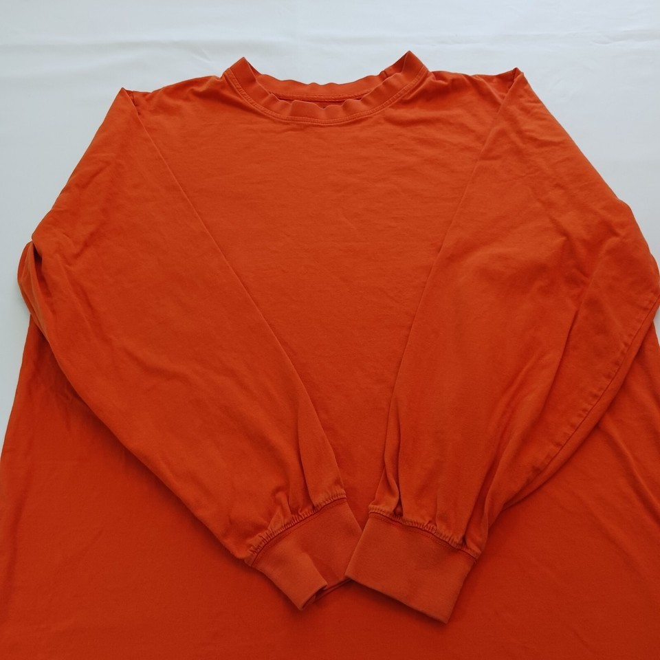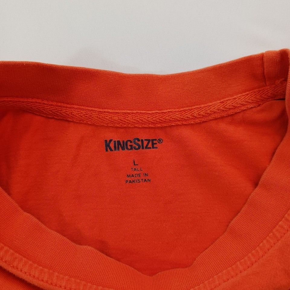 - King Size Crewneck Men's Orange Cotton Pullover Sweatshirt Long Sleeve Sz L Tall