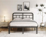 - King Size Heavy Duty Black Metal Platform Bed Frame With Headboard