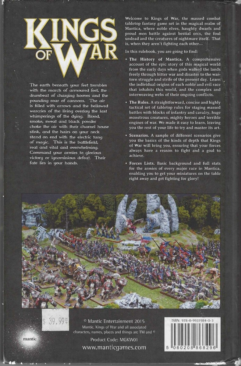 - KINGS OF WAR: THE GAME OF FANTASY BATTLES (2015 2nd Edition) Mantic Games HC