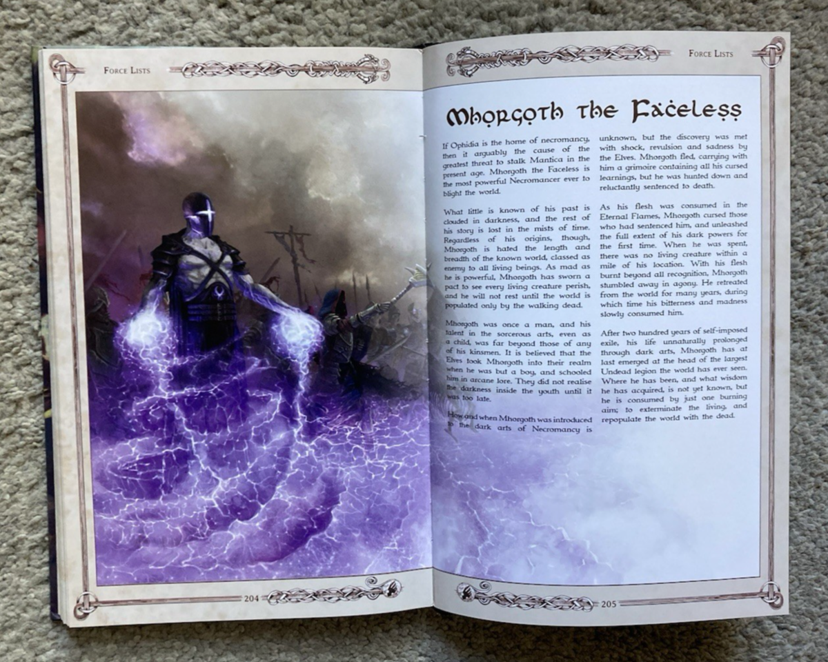 The game has been designed for armies of fantasy miniatures. It uses stock fantasy races such as Elves, Dwarves, Undead and Orcs, as well as demonic version of Dwarfs known as Abyssal Dwarfs. Each race has an alignment (good, evil or neutral) and races of the same or compatible alignments can join forces, allowing the player to have a mixed army.