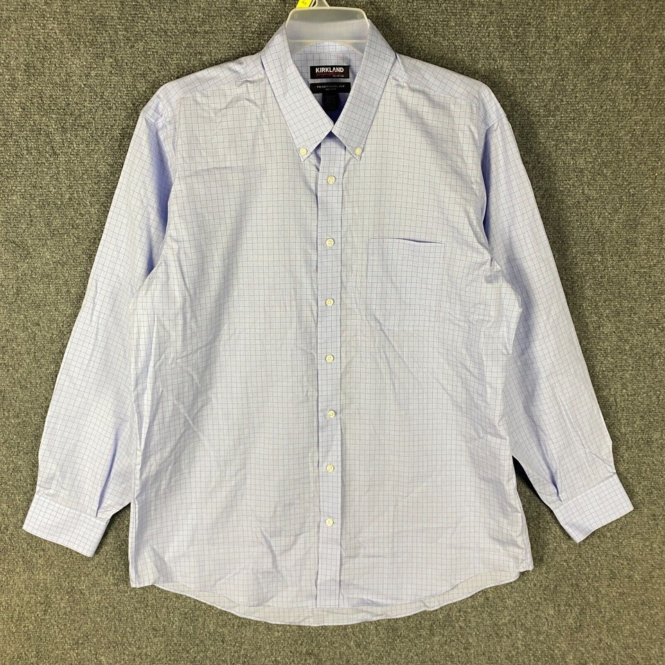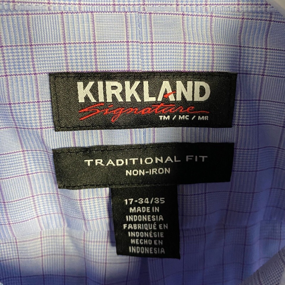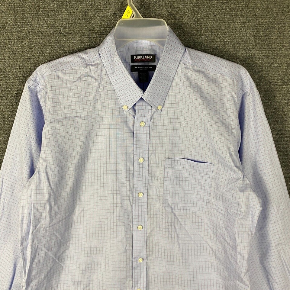- Kirkland Button Down Shirt Men's 17 Traditional Fit Long Sleeve 34/35 Cotton