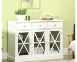 - Farmhouse style furniture evokes a cottage charm in your home - Framed glass doors allow you to display decorative keepsakes - 3 drawers and an enclosed cabinet provide ample storage - Built-in adjustable shelves make it easy to customize the space - Can be used as a buffet, storage cabinet and TV console - Made of MDF and glass - Features anti-topple straps and can be fixed to the wall for safety - Assembly required