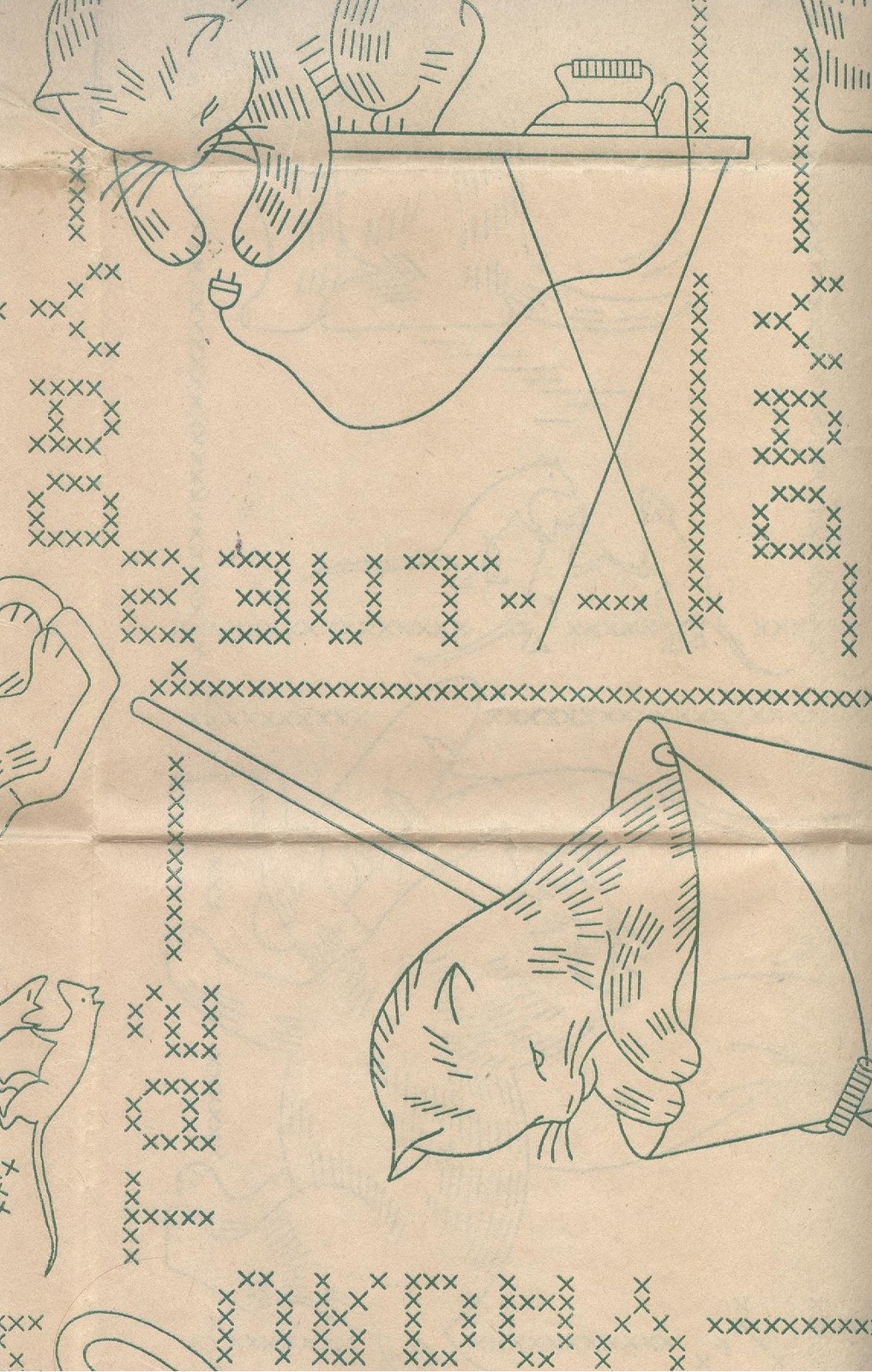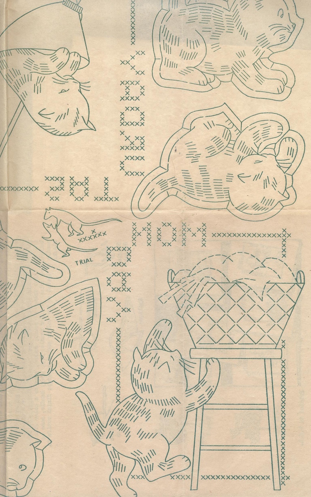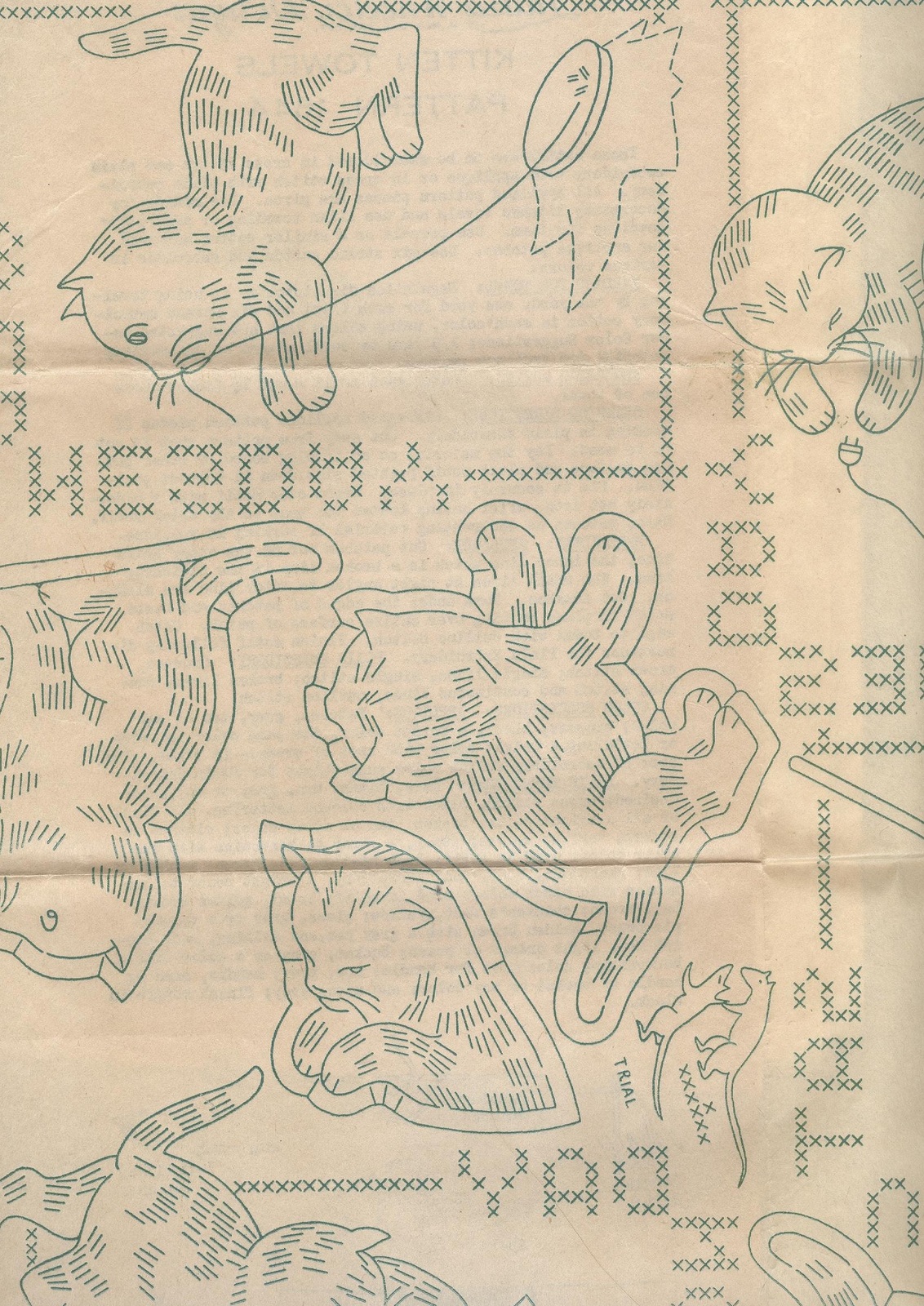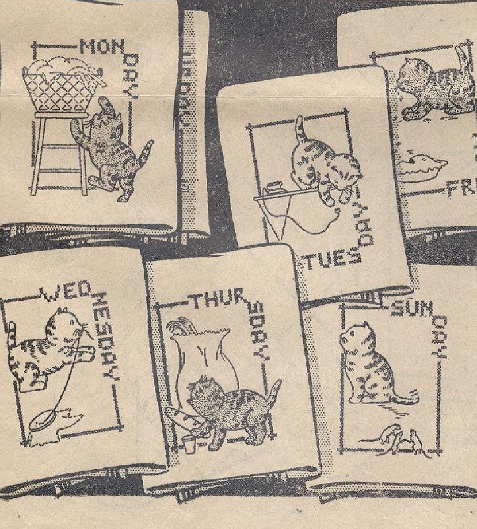 This is for a black and white copy from my original #1644 Laura Wheeler transfer.Features kitten doing household chores to the days of the weeks.Intended for tea towels.You will receive a copy of all 7 designs as well as the embroidery and color suggestions.Motifs average 6.5"x 5" in size. To use this copy you will need to either trace the design with a transfer pen and then iron onto fabric or trace it with a pencil directly onto fabric using a light source.(completed linens not for sale)****************This material comes from a public domain source.{Printed in 1938 without copyright notice and entered public domain immediately}This is a photocopy of my original pattern/linen which is in the public domain and does not infringe upon any copyrights RE:COPYRIGHTS My reproductions are adapted from original vintage transfers/patterns/linens in my personal collection.The ORIGINALS are now in the Public Domain because their copyright has expired....Because of alterations made by my editing these reproduction are entirely copyrighted by craftycharlie's and may not be recopied in any media.Purchases of these reproductions does not constitute permission to copy or reproduce. All images have been cleaned, restored / edited ****************
