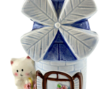 Pretty Porcelain Coin Bank Windmill Shape with Kitty Cat