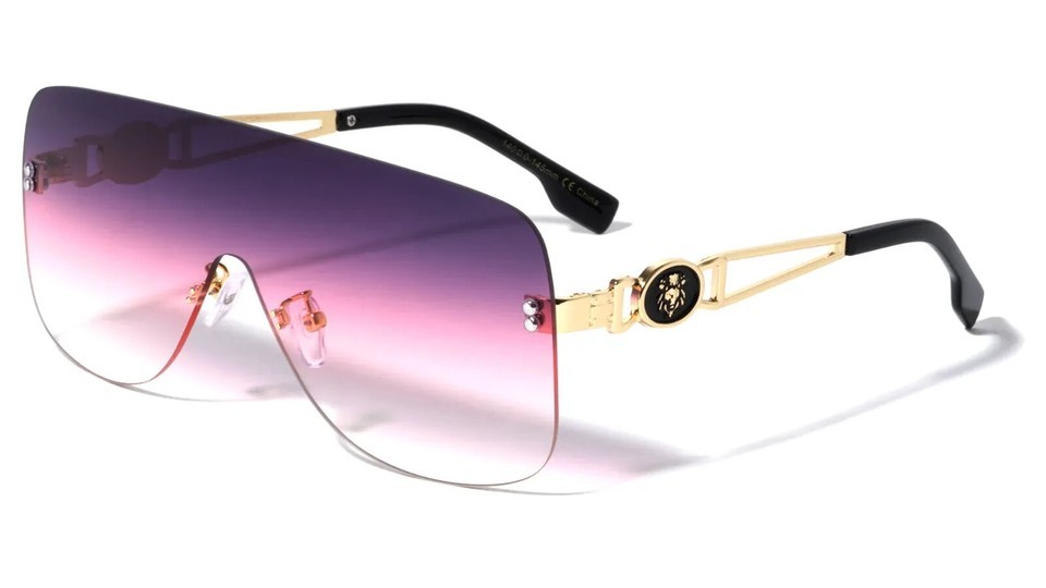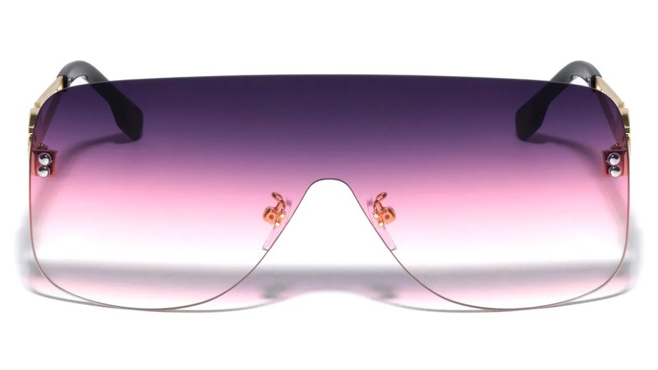 - KLEO RIMLESS OVERSIZED ONE PIECE SHIELD LENS SUNGLASSES RETRO DESIGNER FASHION