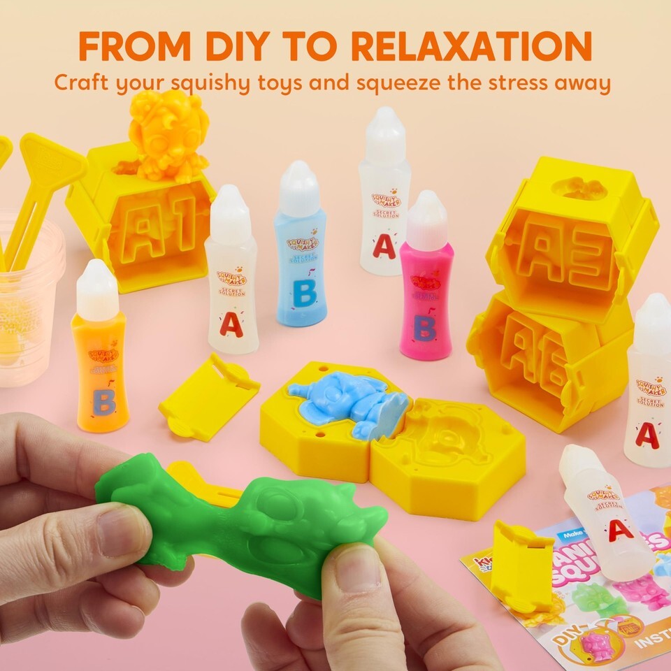 Complete Set Included: The kit comes with everything you need to get started: 4 animal molds, Secret Solutions A and B, mixing cups, and stirring rods. No extra purchases necessaryjust mix, pour, and start crafting your squishy toys right away for instant fun.