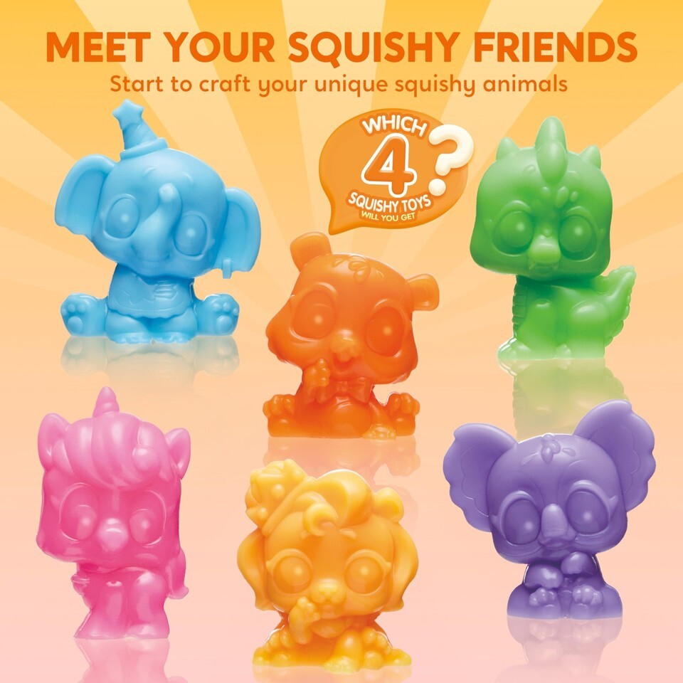 Create Collect: Craft your own squishy toys with 4 mystery animal characters from a set of 6 possible designs! Mix, mold, and collect your special creations. Every squishy you make is a surprisegreat for kids who love mystery toys and want to build their own fun collection.