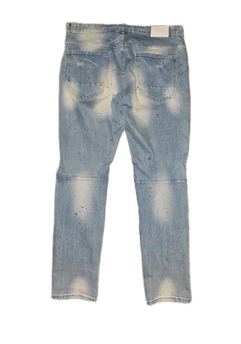 Kloud9 Streetwear Distressed Tie Dyed Graffiti Light Blue Denim Jeans Sz 40x32