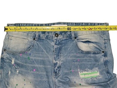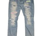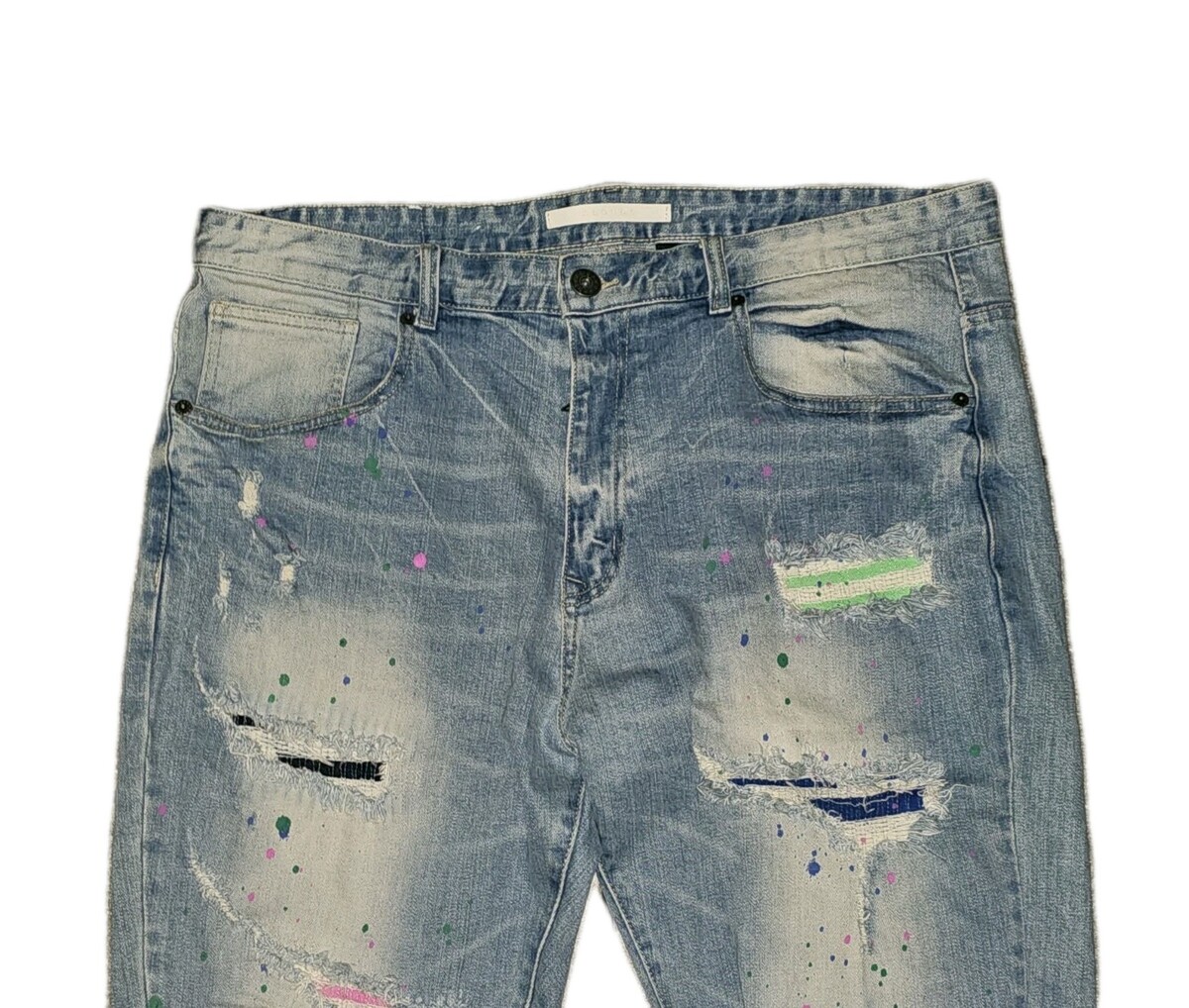 - Kloud9 Streetwear Distressed Tie Dyed Graffiti Light Blue Denim Jeans Sz 40x32