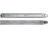 Direct access mounting holes, precision ball bearings, telescopic action, non-handed design, and lever disconnect. Includes screws for installation. Height: 1-1/8". Clearance required: 1/2" plus 1/32" minus 0 each side. Maximum drawer width 24".
