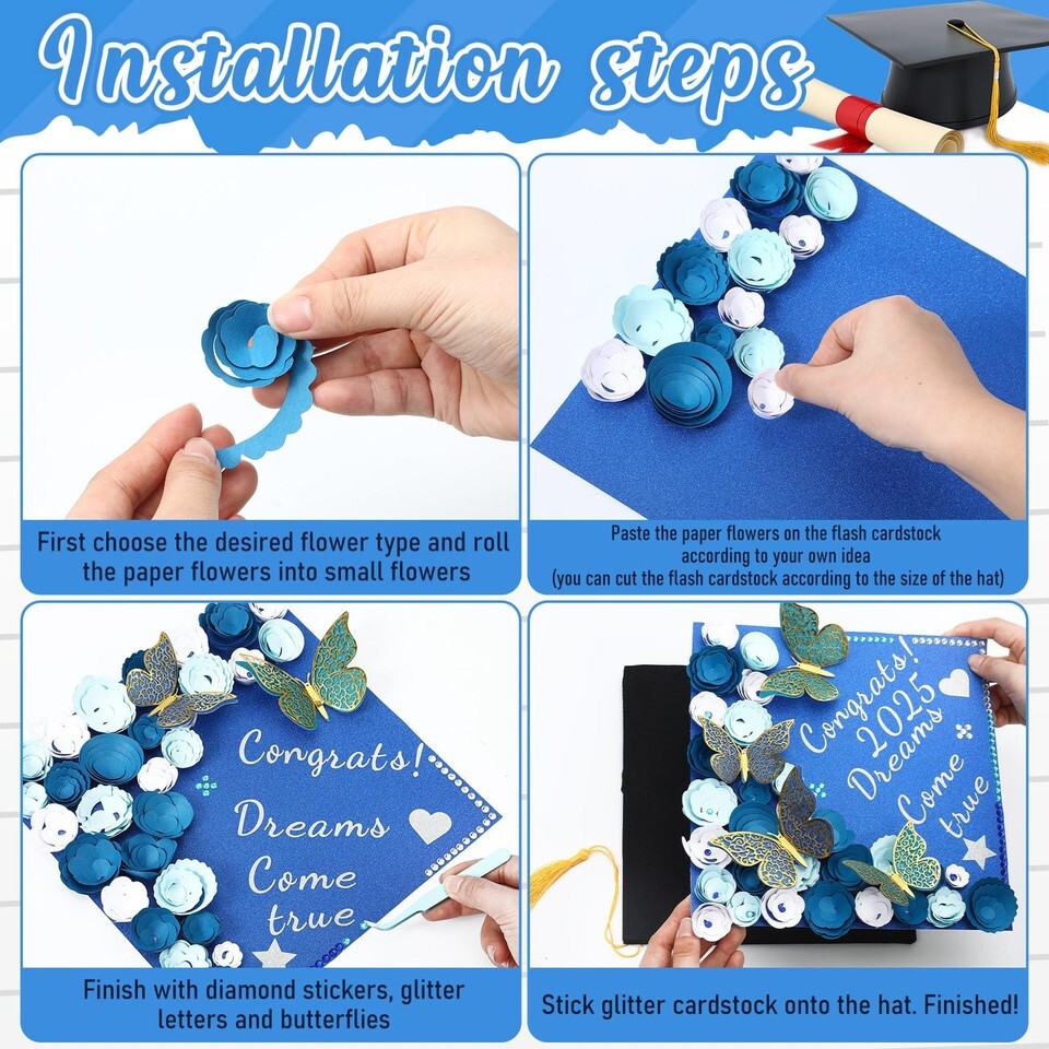 Variety of Colorful Decoration Items: enjoy an abundance of colorful origami flowers, shining glitter construction paper, butterflies stickers, diamond stickers, and glitter letter stickers; With these assorted items, your graduation cap will be as vibrant as your future prospects, radiating the most vivid colors that truly represent your personality and taste