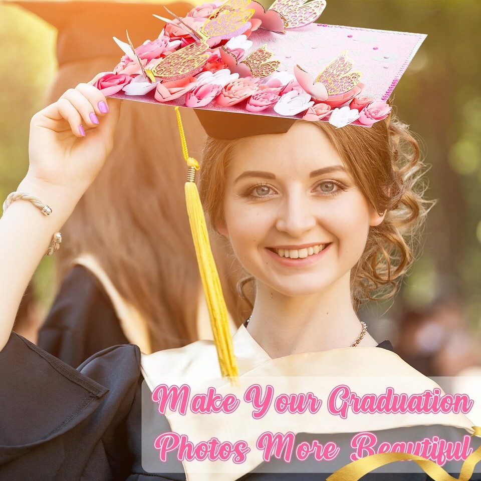 - Knitgrip Graduation Cap Decoration Kit 98 Pc Pink Faux Flowers Butterfly