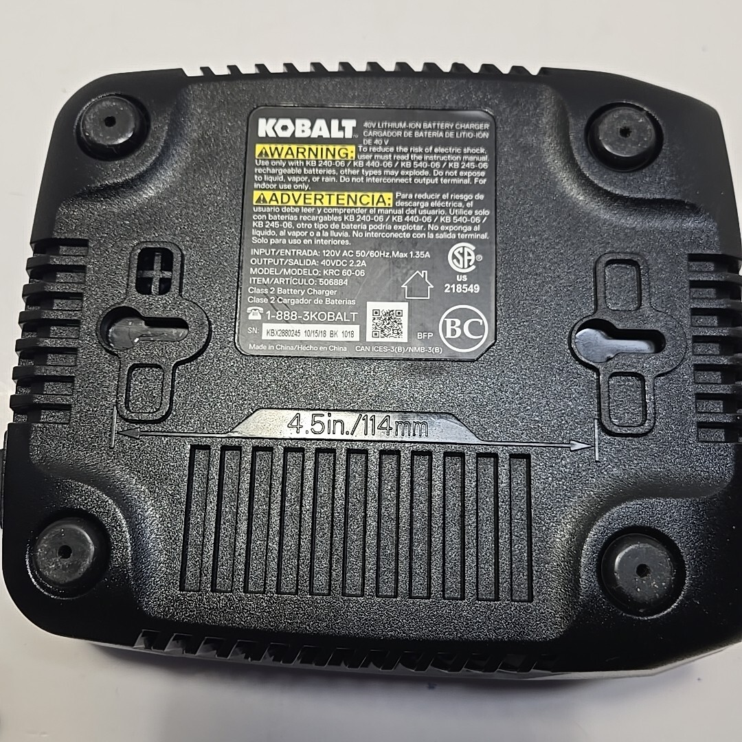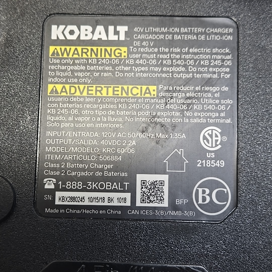 - Kobalt KRC 60-06 40V Max Lithium Ion Battery Charger Only Tested OEM