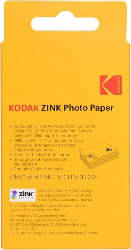 This KODAK Premium ZINK Photo Paper (20 - 100 Sheets) is specially designed for Kodak PRINTOMATIC cameras, producing smudge-free, water-resistant, tear-resistant, and sticky-backed prints?perfect for scrapbooking, journals, and fun instant memories.