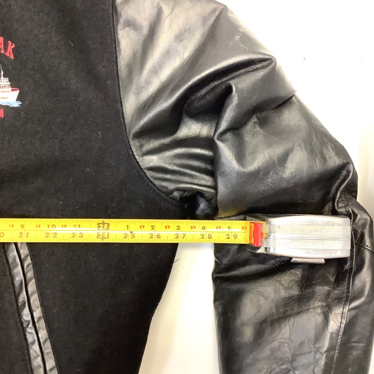 Kodiak Alaska Ship Captains Jacket Coat Mens Sz XL Full Snap Excelled NY USA Wool Leather. Shows some minor wear, but overall very nice conditions. Please see all photos. Photos include measurements for armpit to armpit and for top of shoulder to bottom of jacket.