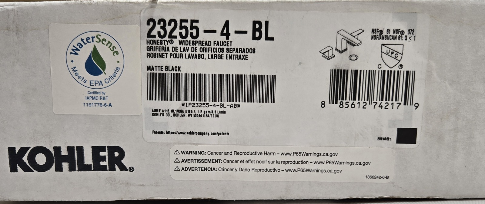 - Kohler 23255-4-BL Honesty Widespread Faucet with Drain Assembly - Matte Black