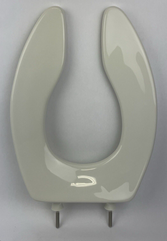 Perfect for commercial applications, this Lustra elongated toilet seat features extra-heavy construction and a chip-resistant polypropylene finish that will not stain or peel. This model has an open front and includes a check hinge that lets the seat stand up at 11 degrees beyond the vertical position.