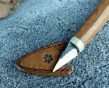 Small kolrosing knife from hand-forged high carbon steel blade and plum wood and a deer antler handle.