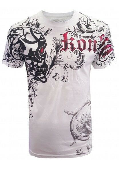 - KONFLIC GRAPHIC T-SHIRT Tribal Skull { White } with Red Foil Trim MMA