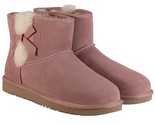 The Koolaburra by UGG Women's Victoria Mini Boot in Ash Rose, Size 11 M, is a stylish and comfortable bootie designed for casual occasions. It features a round toe shape, pull-on closure, and a flat heel for all-day wear. The boot is accented with fur trim, a stylish bow, and the brand's logo, making it a fashionable choice for the winter, fall, and spring seasons. With its ankle shaft style and solid pink color, this boot is a versatile addition to any woman's wardrobe. Made with suede upper material and faux fur lining, it offers both functionality and beauty.