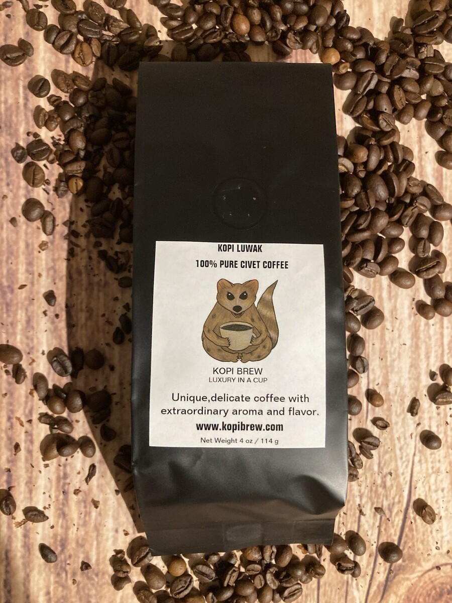 - Kopi Luwak 100 % Pure Civet Ground Coffee 4 oz / 114 g