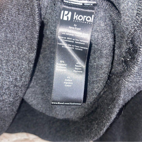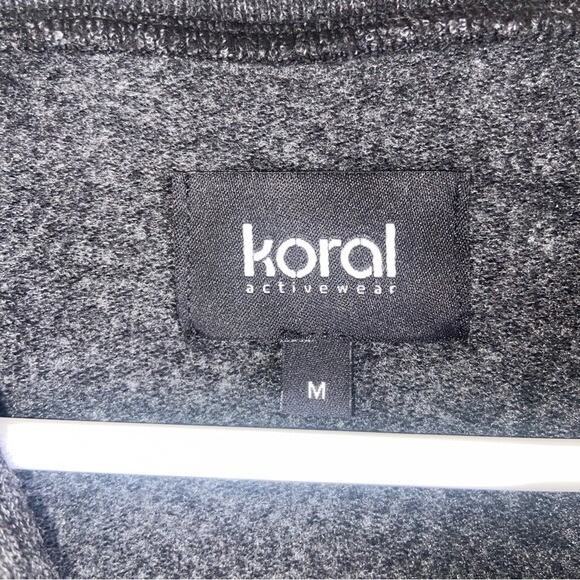 Koral Caliber Cutout Hoodie in Heathered Black Size Medium NWT / 50 Polyester 46 Rayon 4 Cotton/ See through cutout front detail / hooded