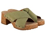 The Kork-Ease Women's Tatum Leather Slide Platform Sandals in Sunflower with a 2-3/4" heel offer a stylish and comfortable option for various occasions such as travel, parties, casual outings, and business meetings. These slip-on sandals feature a lightweight design with a cork insole for breathability and comfort. The green color, solid pattern, and vintage-inspired theme make them a versatile addition to your wardrobe for the summer and spring seasons. The rubber outsole provides slip resistance, while the leather lining and upper material ensure durability and quality. Perfect for adding a touch of bohemian or retro style to your outfit.