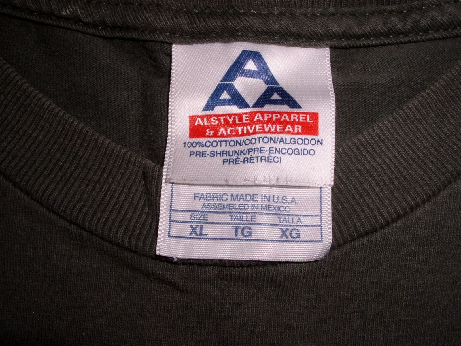 Tagged a size X-Large, measurement from pit to pit is 23". Front collar to hem is 26 3/4". Shirt is quite large.