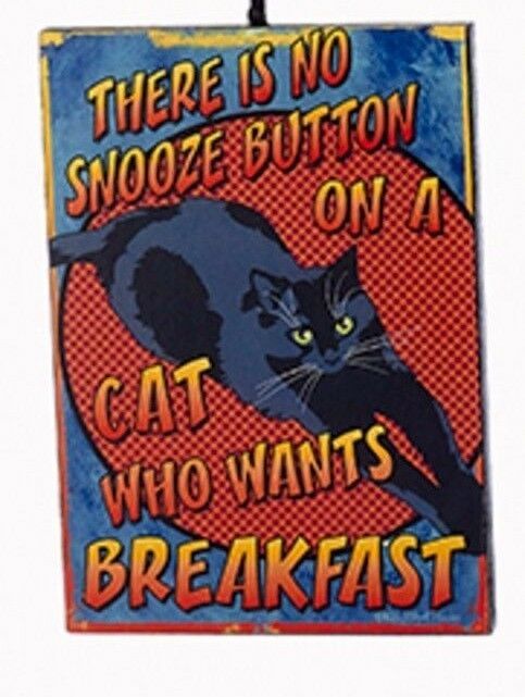 BRAND NEW with tags KSA (KURT S. ADLER) WOODEN CAT ATTITUDE PLAQUE ORNAMENT "THERE IS NO SNOOZE BUTTON ON A CAT WHO WANTS BREAKFAST"