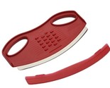 The Kuhn Rikon XL Mezzaluna Knife Grater with Sheath in red is a versatile and high-quality kitchen tool made in Switzerland. This X-large Mezzaluna features a unique design that allows for effortless cutting and grating tasks, making meal preparation a breeze. The blade is made of durable metal, while the handle is crafted from plastic for a comfortable grip. The included sheath adds to its functionality and convenience for storage when not in use. Perfect for home cooks looking for a reliable and efficient kitchen gadget.