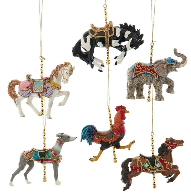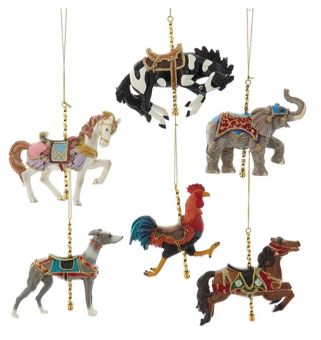 - KURT ADLER 4.75" SET OF 6 CAROUSEL HORSE & ANIMAL CHRISTMAS ORNAMENT SET E0952