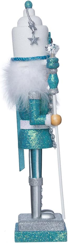 Designed by renowned artist Holly Adler, Hollywood Nutcrackers is a whimsical collection of nutcrackers created exclusively for Kurt S. Adler, Inc. and features a variety of designs including Christmas, fantasy and everyday nutcrackers. Their designs put a unique, vibrant, memorable twist on traditional nutcrackers. This 17" nutcracker by Kurt Adler has a wonderfully wintry turquoise and white design and color scheme. Extra special details include snowflakes and stars on his hat and a regal gem-topped staff.