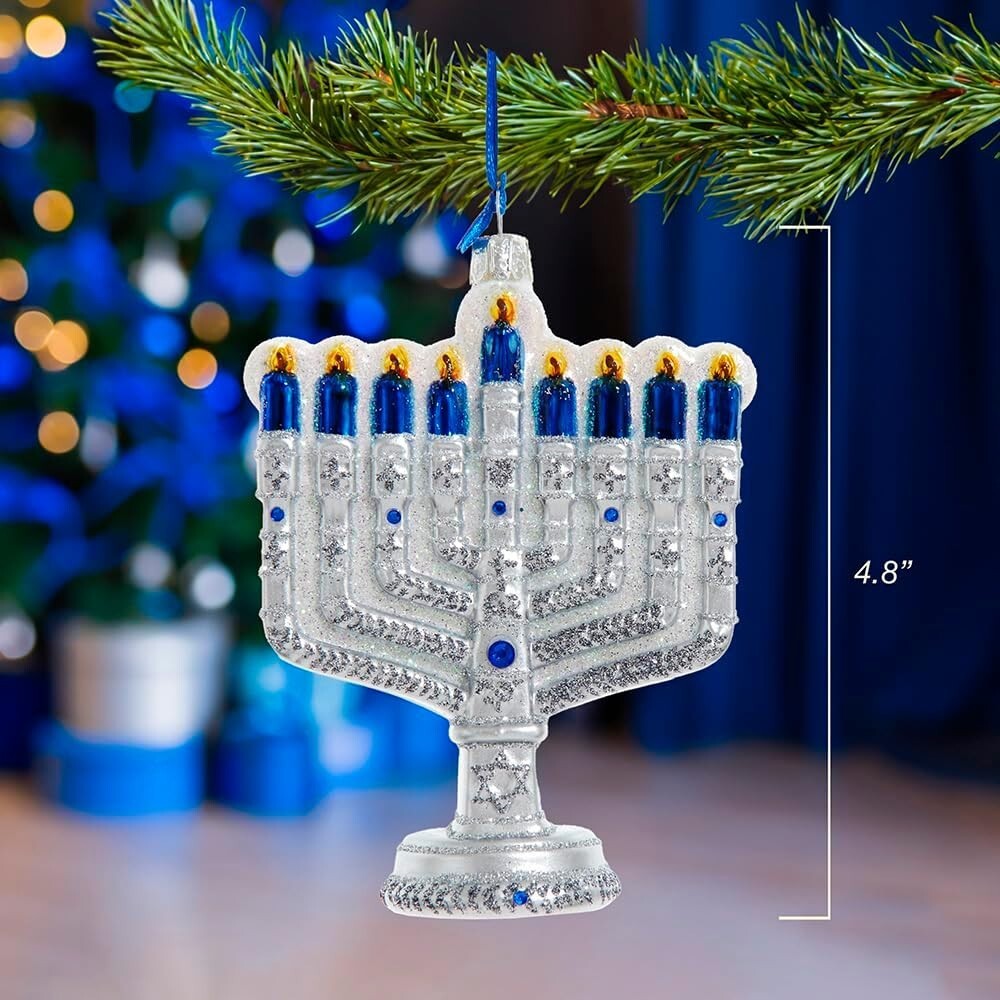Noble Gems™ Glass New Hanukkah Menorah Ornament |
