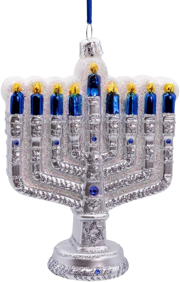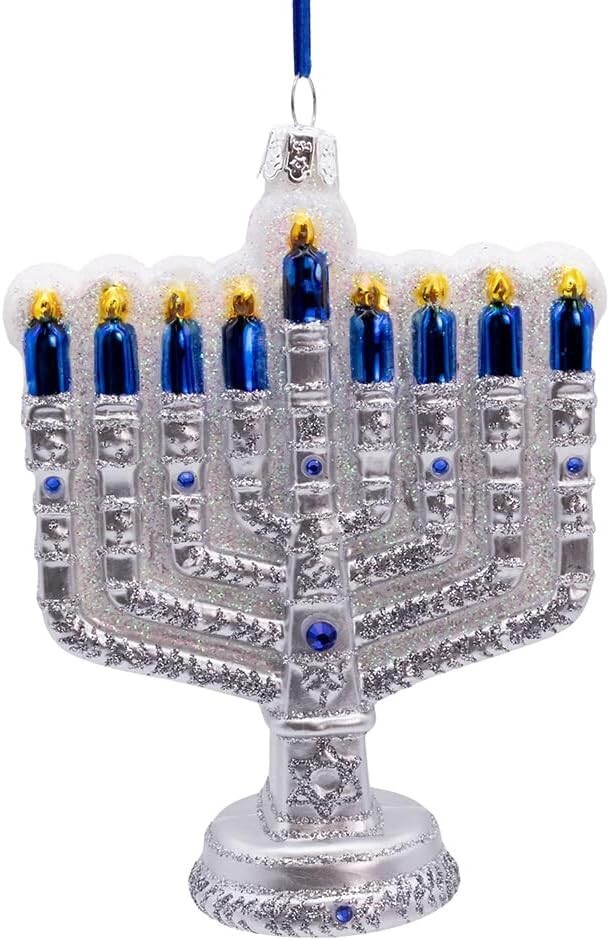 BRAND NEW with Tags KURT ADLER NOBLE GEMS 4.75" GLASS NEW HANUKKAH MENORAH HOLIDAY ORNAMENT NB1804