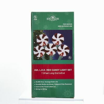 - KURT ADLER RED LED PEPPERMINT SWIRL CANDY 20 LIGHT SET CHRISTMAS LIGHTS UL0147