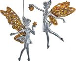 Set of 2 Silver Fairy w/Gold Glittered Wings Christmas Ornaments |