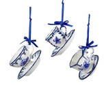 - KURT ADLER SET OF 3 PORCELAIN DELFT BLUE CUP & SAUCER CHRISTMAS ORNAMENTS J0651