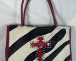 - KurtMen Purse Genuine Hide Zebra Print Red Leather Trim W/Red Stone Cross Wester