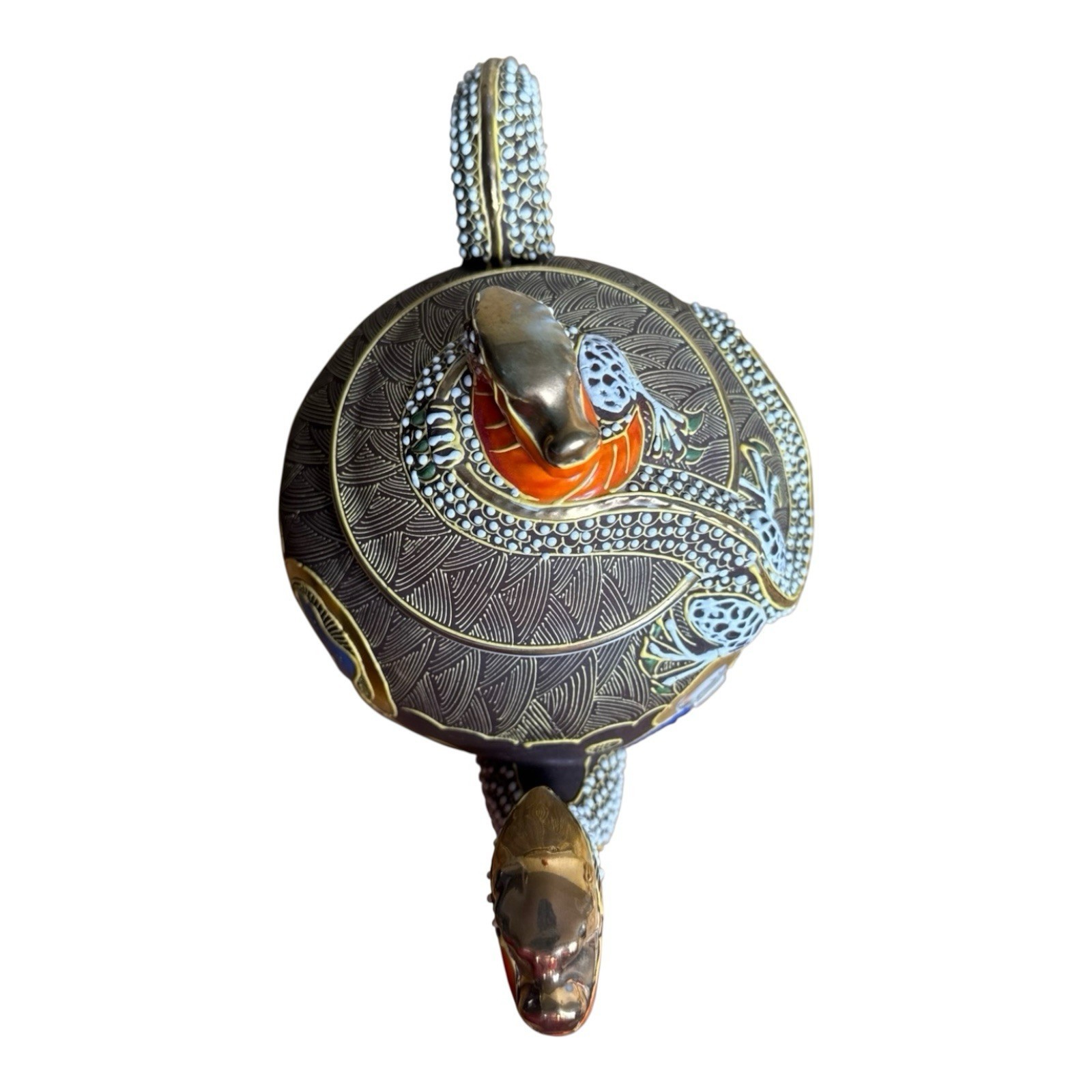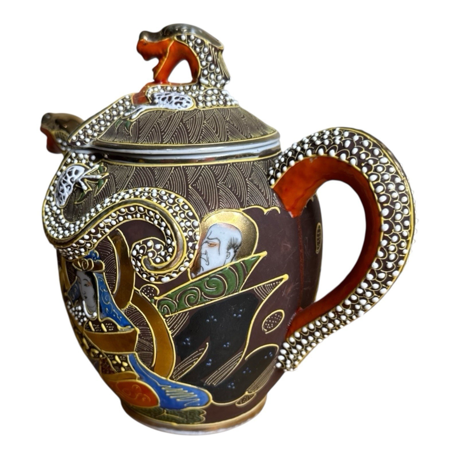 - Kutani Dragonware Japan Brown Dragon Gold Teapot Womans Face Moriage Jap1337