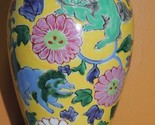 - Kutani Yoshidaya Vase 7" Yellow w Shishi green Foo Dog Leo Lion Dragon Vintage