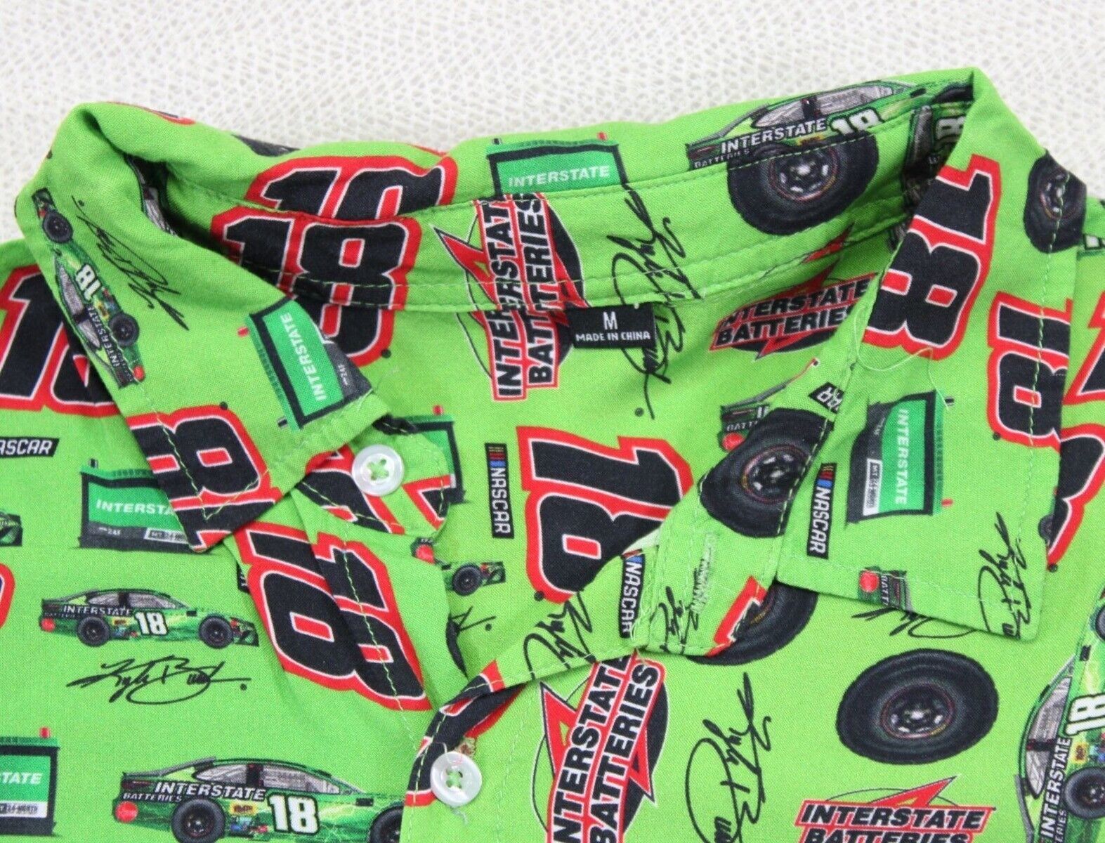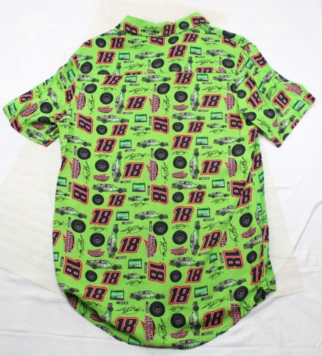 - Kyle Busch #18 NASCAR Racing Button-Up Shirt Green Nascar All Over Graphics