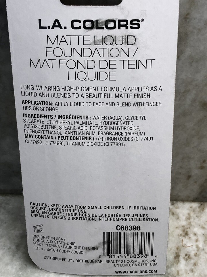 - L.A. Colors Matte Foundation Porcelain C68398 High Pigment Formula NWB