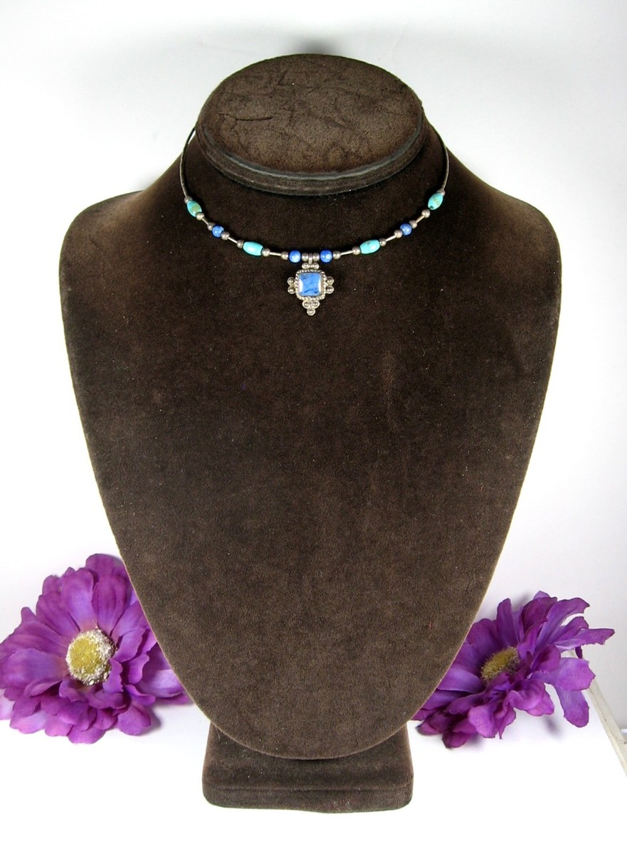 LAPIS LAZULI Turquoise Beads STERLING SILVER NECKLACE Choker Ring 925 BTO Sign