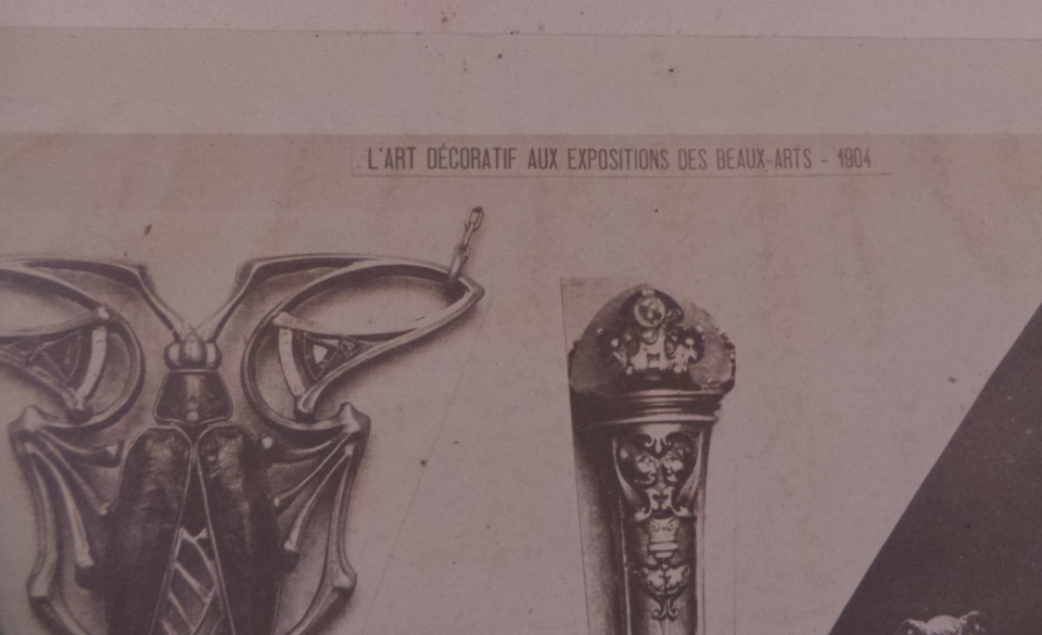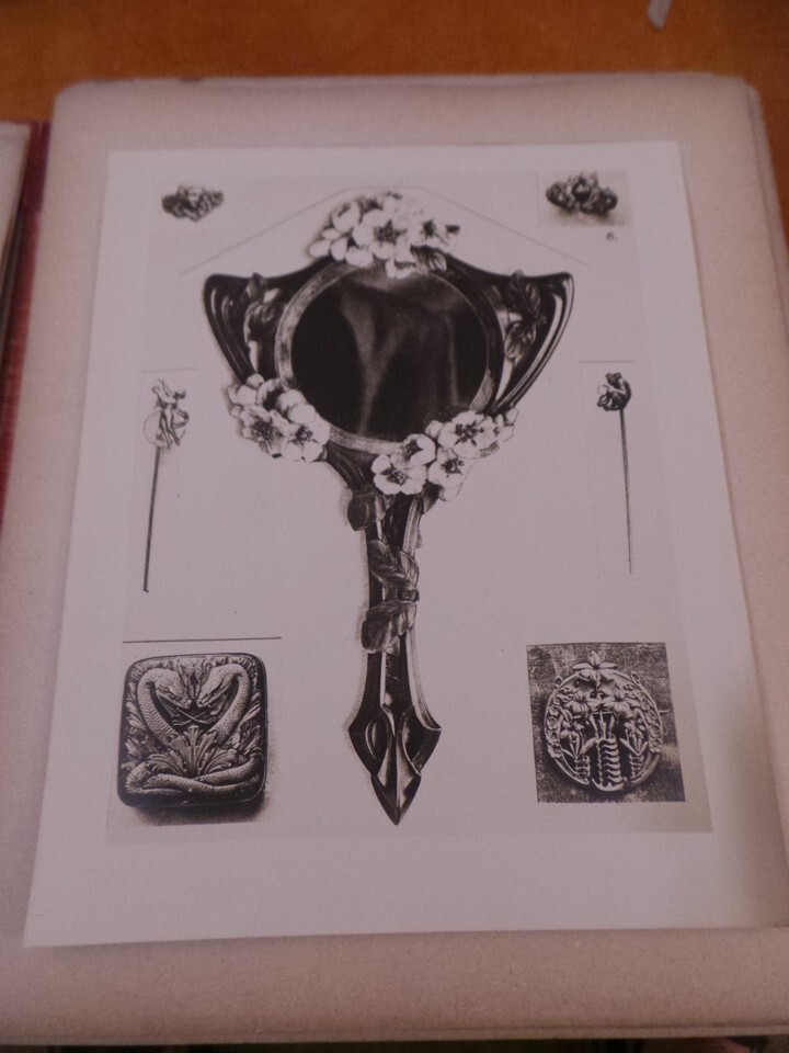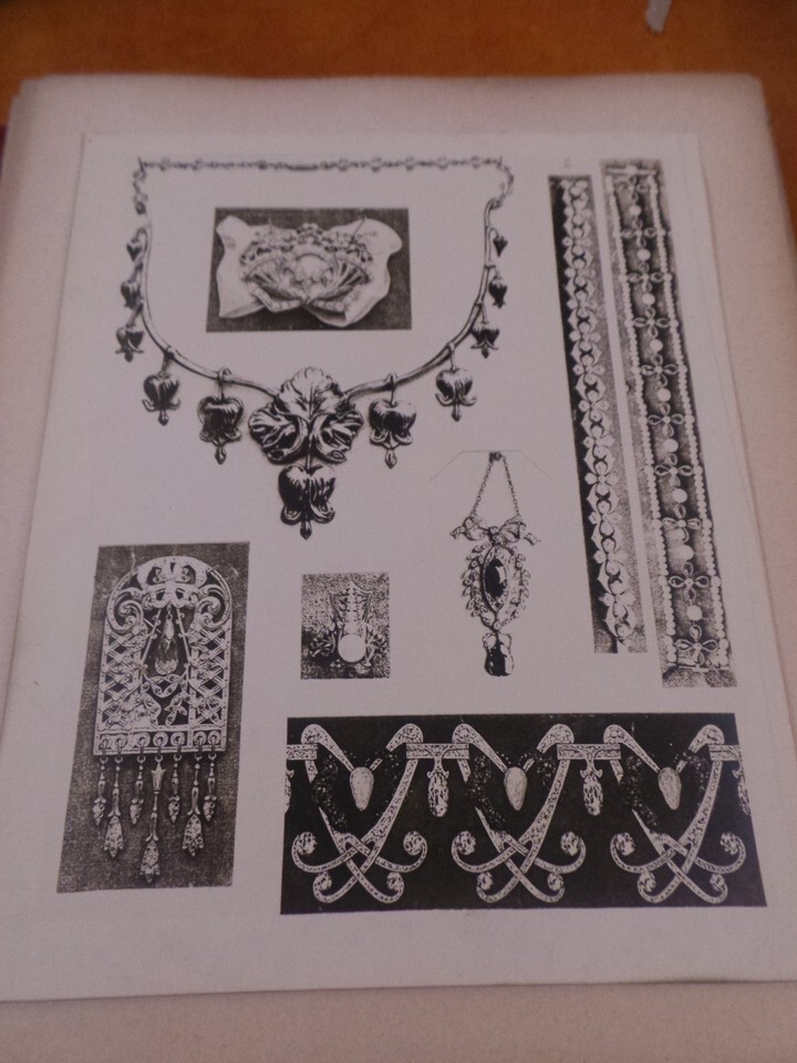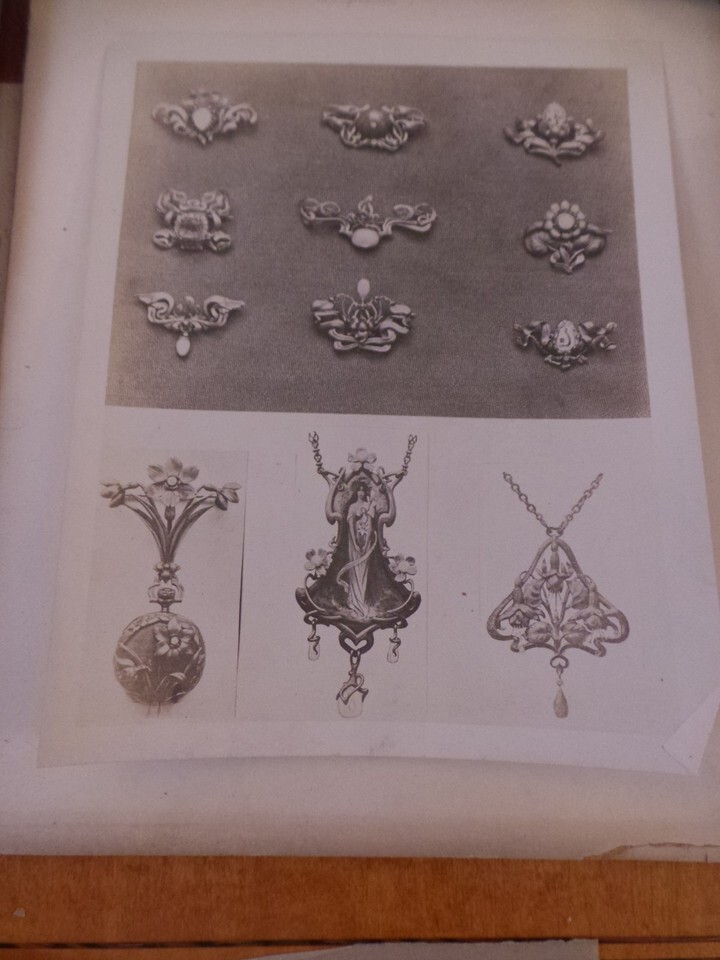 variety of beautiful Jewelry designs from 1906. one page has "L'Art Decoratif Aux Expositions des Beaux - Arts 1904" at top