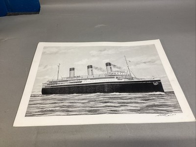 L?Atlantique Ship Art Print - 16x12?. In good condition. Signed in 2018. Looks like the original print was from 2017 and signed at that time too.