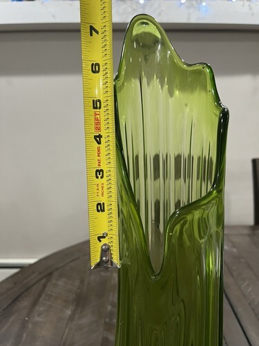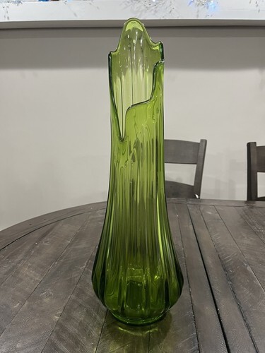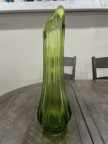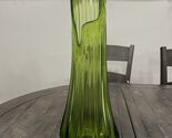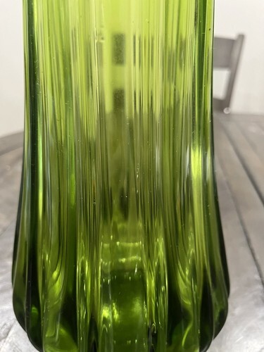 - L.E. SMITH 19 3/4” Green MCM Ribbed Column Swung Glass Vase Fat Bottom